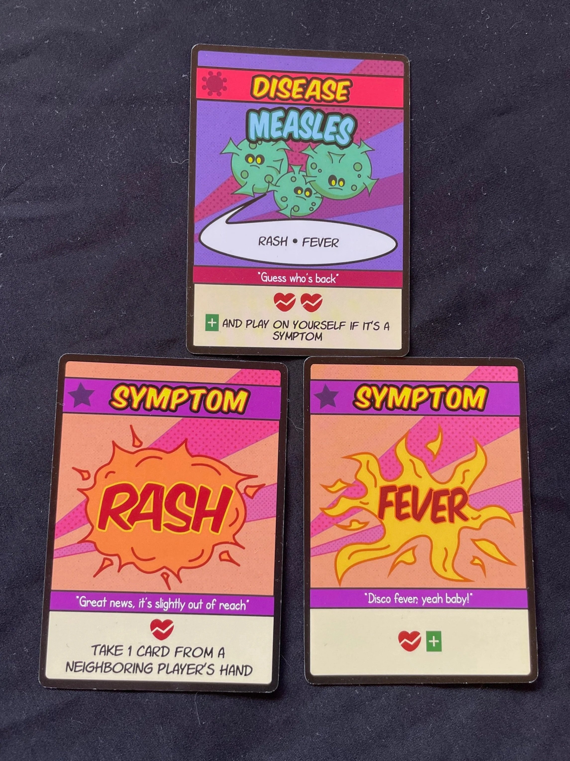 Play Symptoms and Diseases on your opponents! Diseases can’t be played until your opponent has a complete set of that Disease’s Symptoms first.
